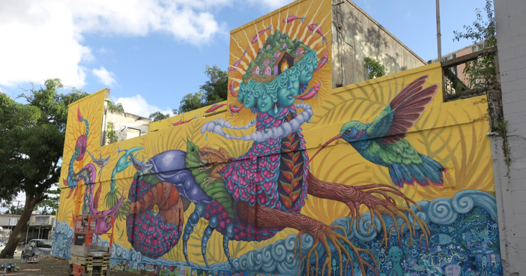 El gigantesco mural, pintado por la artista canadiense Danae Brissonnet, se ubica en el edificio Bahía A en la comunidad El Gandúl en Santurce.
