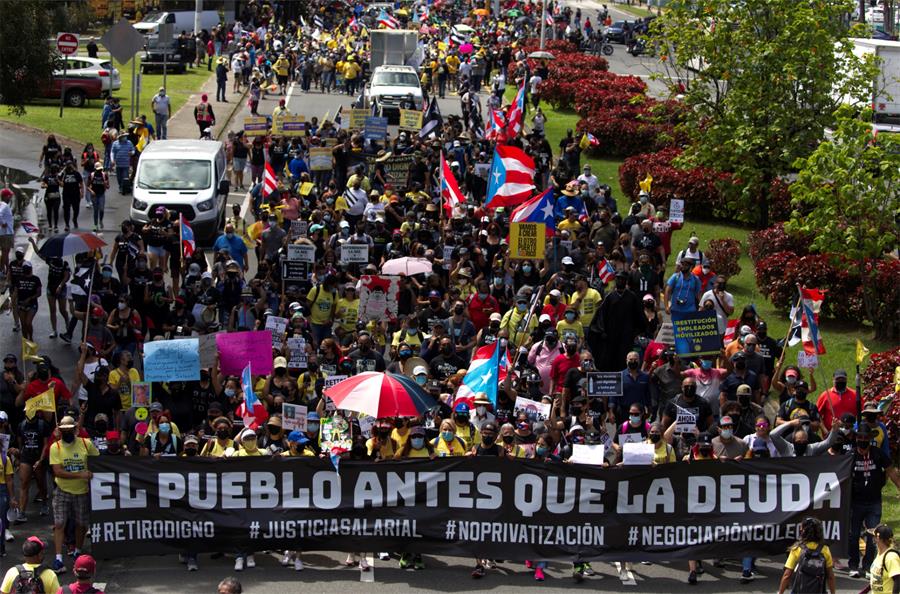 Los manifestantes también rechazaron muchas condiciones del ya aprobado Plan de Ajuste de la Deuda (PAD), que diseña el camino para sacar a la isla de la quiebra, lo que quedó demostrado en la pancarta de la cabecera de la marcha: «El pueblo antes que la deuda».