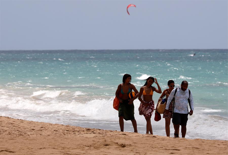 Fotografías de archivo que muestra unas personas caminando en grupo en la playa de San Juan, Puerto Rico. (Foto: EFE/Thais Llorca)