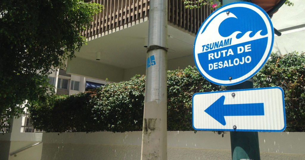 Puerto Rico sufre con frecuencia terremotos, mayoritariamente de baja o media magnitud, y en sus calles hay señales para indicar rutas de desalojo en caso de tsunami.