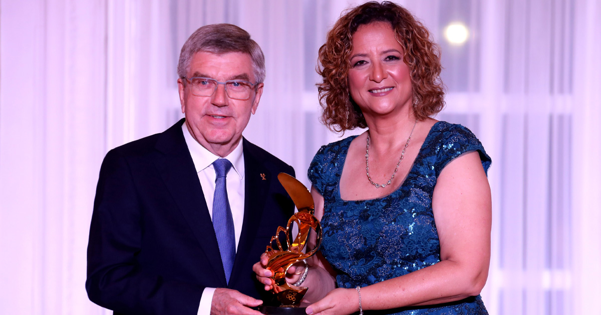 Bach aprovechó asimismo la ocasión para entregar a la presidenta del Copur, Sara Rosario, una estatuilla que simboliza la «paz y sociabilidad», valores que iza el COI por todo el mundo.