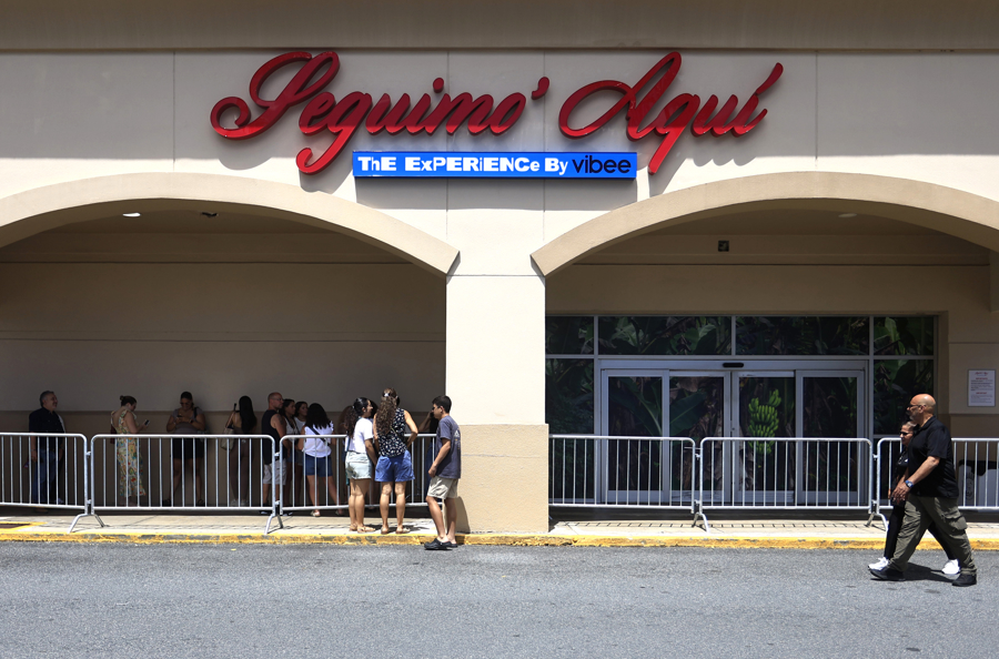Personas hacen fila para ingresar a la experiencia inmersiva ‘Seguimo’ Aquí’ este 15 de julio de 2025, en San Juan (Puerto Rico). (Foto: EFE/Thais Llorca)