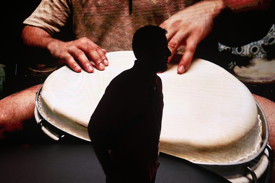 La experiencia inmersiva ‘Seguimo’ Aquí’, a la cual EFE tuvo acceso, presenta en múltiples salas elementos simbólicos como cientos de pavas (sombrero de paja), y rinde homenaje a las raíces puertorriqueñas que formaron al reconocido artista, como el género autóctono de la bomba, que se destaca con un video en varias pantallas en 180 grados.