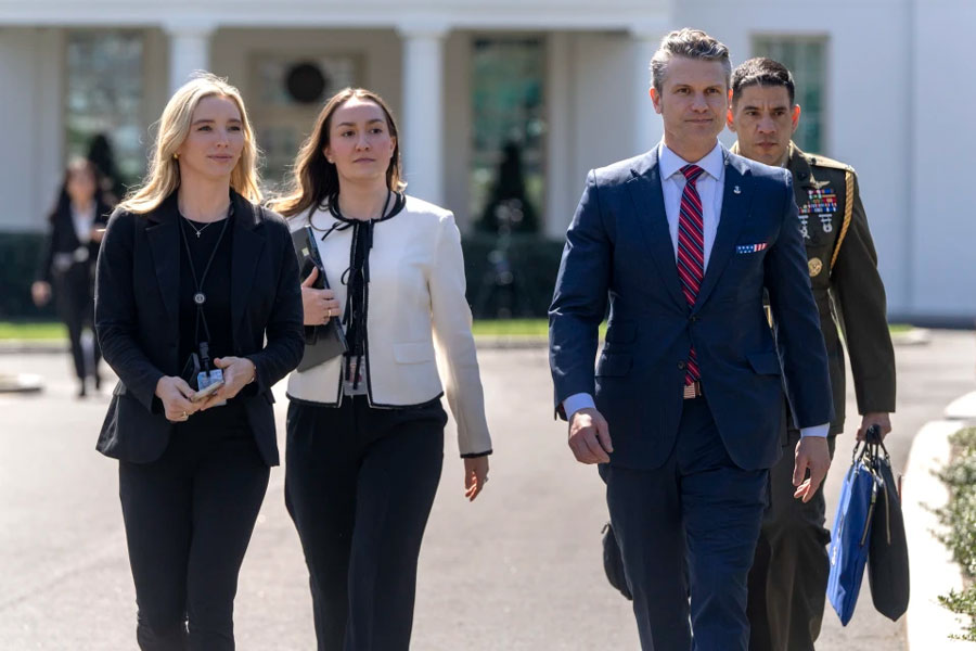 El secretario de Defensa estadounidense Pete Hegseth (segundo desde la derecha) en la Casa Blanca en Washington el 21 de marzo del 2025. (Foto: AP/Mark Schiefelbein)