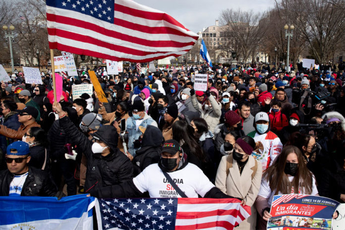 Inmigrantes y organizaciones que los apoyan se unieron el 14 de febrero en manifestaciones espontáneas en varias ciudades estadounidenses en reclamo de una reforma migratoria tras la convocatoria de «Un Día Sin Inmigrantes» que hizo por TikTok a principios del mes el activista Carlos Eduardo Espina. Cerca de un millar de inmigrantes se reunieron frente a la Casa Blanca para urgir al presidente Joe Biden a que cumpla su promesa de campaña y solucione la estadía legal y permanente de unos 11 millones de indocumentados en el país.
