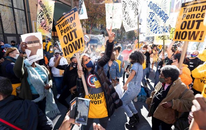 «Trump, esto es Fialdelfia», «Ríndete a la democracia», «Cuenten todos los votos» o «Los votos negros importan» son algunos de los carteles que llevan los participantes en esta celebración que ha empezado ante la inminencia del resultado de la contienda.