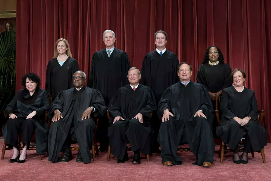 Of the nine justices hearing the case, three were nominated by Trump — Amy Coney Barrett, Neil Gorsuch and Brett Kavanaugh. But it’s the presence of a justice confirmed decades before Trump’s presidency, Justice Clarence Thomas, that’s generated the most controversy.