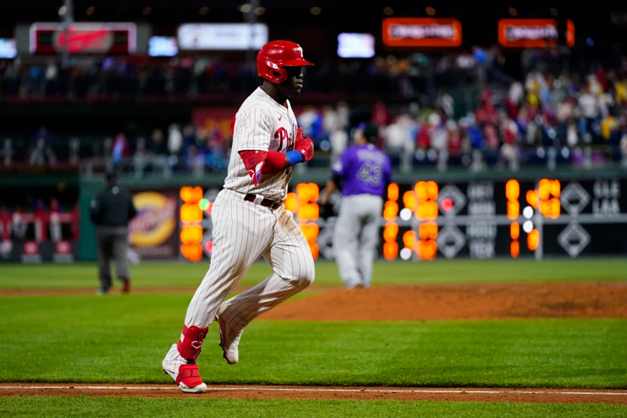 En contraste, los Phillies confrontaron retos en su primer mes de la temporada. Filadelfia tenía marca de 7-10. Su bateo colectivo (.252) era el sexto mejor de las Grandes Ligas y estaban terceros en la Mayores en Dobles (34) pero a la vez, estaban novenos en Porcentaje de Llegar a Base (.319) y empatados, con los Azulejos de Toronto, como decimos, en carreas anotas (72). El pitcheo de los Phillies estaba 24 entre 30 equipos en efectividad colectiva (4.56) y decimo primero en promedio de bateo en contra (.235).