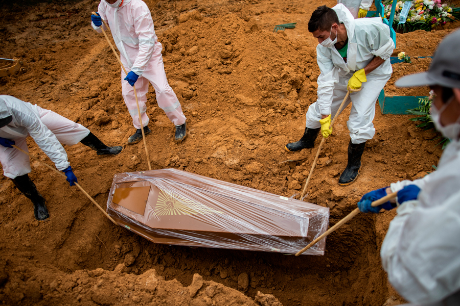 Trabajadores entierran a una víctima de covid-19. (Foto: EFE/Raphael Alves/Archivo)
