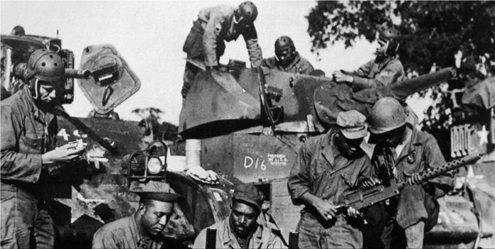 Estaban allí, luchando por América y el mundo, y el comandante blanco decidió enviarlos por delante, mientras que sus oficiales blancos, las otras tropas y el arsenal marchaban unas 12 millas detrás, dejando que los negros recibieran la primera onda del devastador poderío militar nazi.