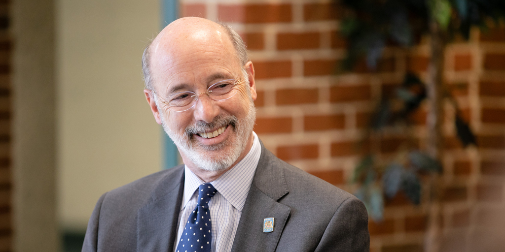 El gobernador se unió al anuncio de Teresa Miller, secretaria del Departamento de Servicios Humanos; George Rudolph, presidente y CEO de PSECU; y Tonya Bastinelli, directora del centro de cuidado infantil Bright Horizons de PSECU.