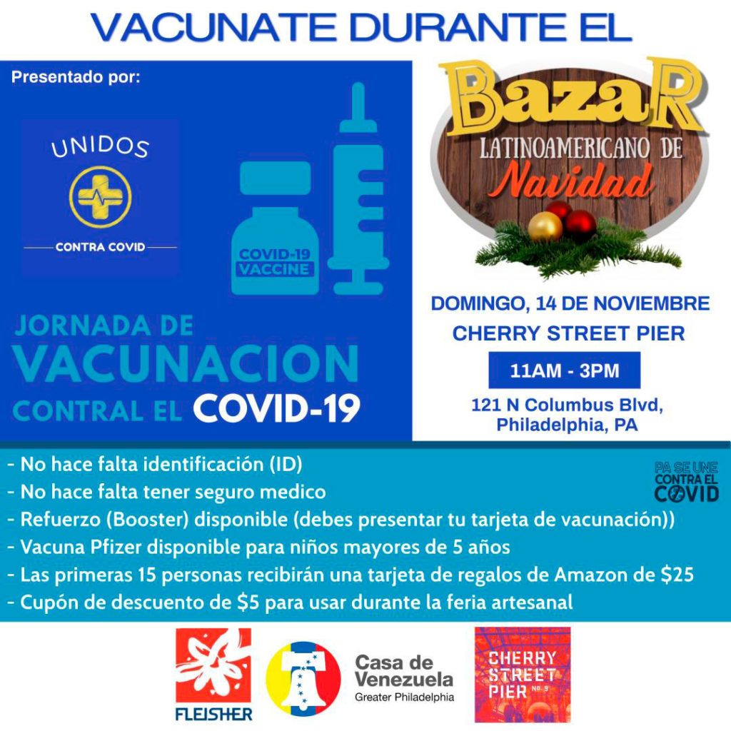 Pero además durante este bazar, niños mayores de 5 años y adultos podrán ponerse la vacuna contra el COVID-19, incluyendo el refuerzo (Booster), ahora que fue autorizado por el Centro de prevención y control de enfermedades, (CDC), por sus siglas en ingles. Estas vacunas son efectivas, seguras y además totalmente gratis, no necesitas tener seguro médico. Recuerda que solo juntos podremos erradicar este mortal virus que nos ha cambiado la vida.