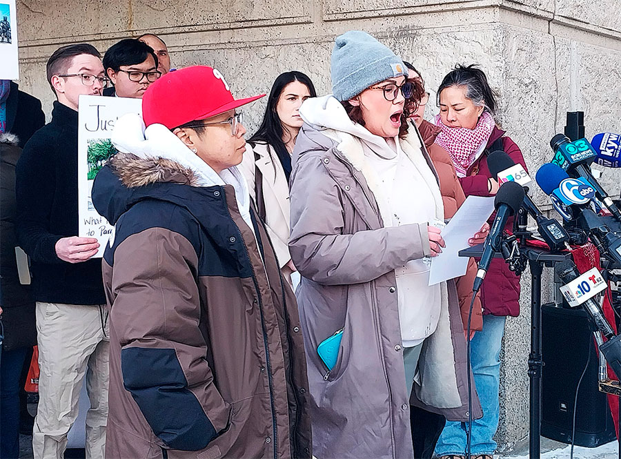 The press conference was moderated by Vivian Chang, executive director of Asian American United. Speakers included Victoria Peña-Parr and Keith Armstrong (ACLU of PA); Meghan Morgan, Parady La’s wife; Jazmine La, his daughter; Lisa, his niece; Shalanda Wright, Philadelphia Community Bail Fund; Nancy Nguyen, VietLead; and State Senator Tim Kearney.