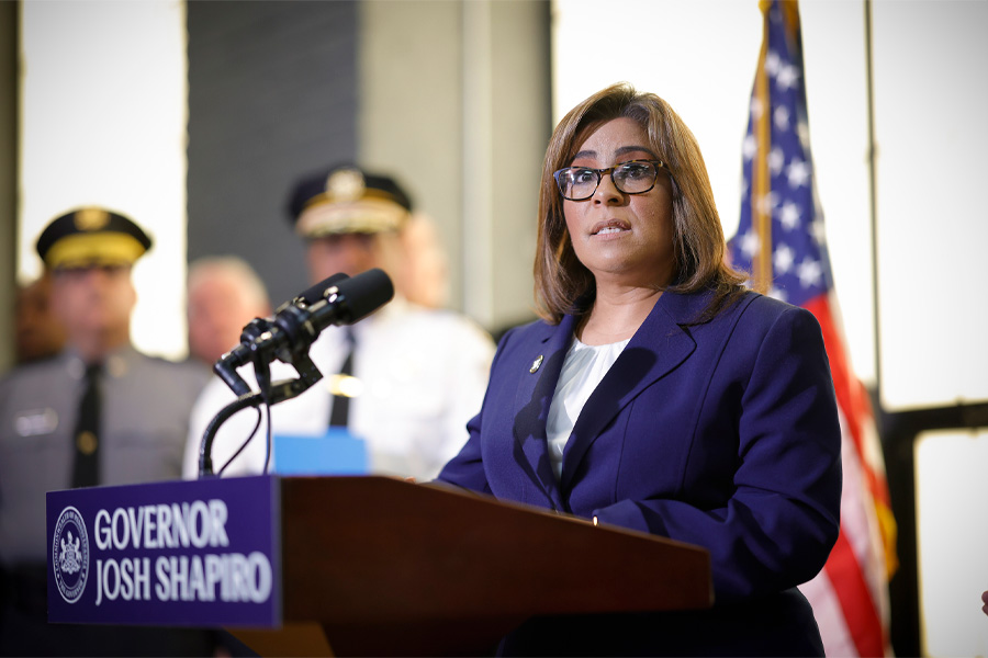 La concejal de la ciudad de Filadelfia, Quetcy Lozada, junto al gobernador de Pensilvania, Josh Shapiro, durante una conferencia de prensa el mes pasado. El 11 de mayo, presentó una legislación que prohibiría efectivamente los sitios de inyección supervisada en aproximadamente la mitad de la ciudad.