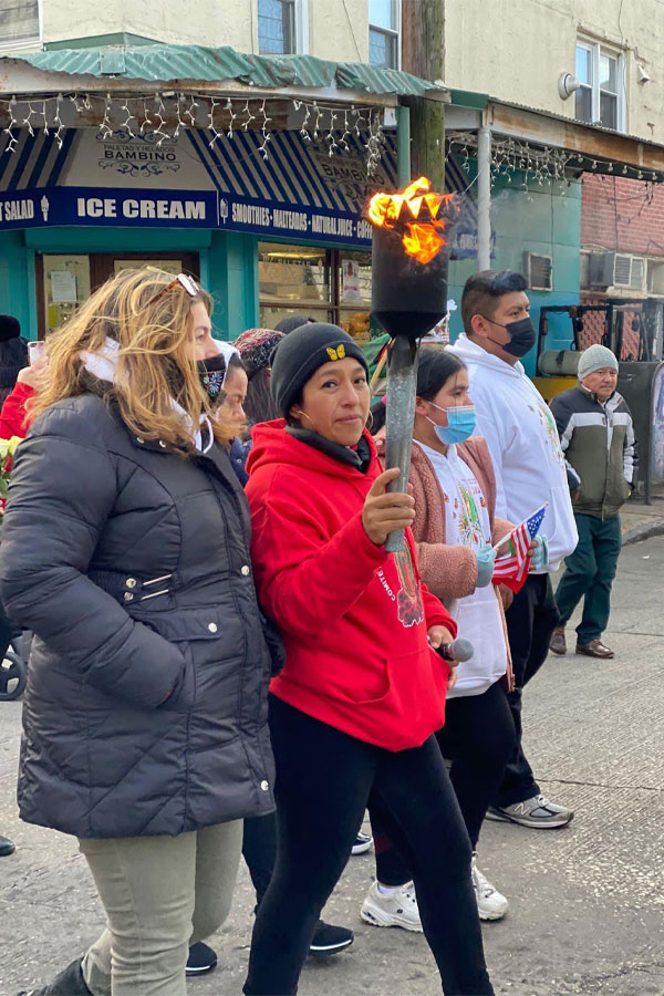 Entre el grupo de organizadores destacó Lucía Romero, a quienes todos llaman “Mamá Lucy”, ella ha acompañado a la Antorcha Guadalupana durante 11 años desde México hasta Nueva York. “Yo perdí a mi hijo en Baltimore…la Virgen me ha fortalecido y me ha regalado muchos hijos que acompañan la Antorcha…tengo mucho que agradecerle”, dijo. La vimos hablarle a la comunidad en las paradas, con cariño y con fe, mostrándoles que este inmenso esfuerzo no es en vano, tiene un gran significado por lo que representa la Virgen de Guadalupe para los creyentes especialmente para los mexicanos.