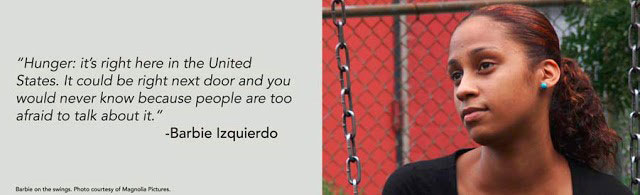 Barbie ha aparecido en un documental llamado, «A Place At The Table», (‘Un lugar en la mesa’) donde se filmó su lucha diaria contra la inseguridad alimentaria durante dos años. El LA Times dice que el documental «puede estar entre los más conmovedores, porque aborda un problema aparentemente sencillo y con solución: el hambre en los Estados Unidos». El documental ha dejado una impresión duradera. Barbie dice: “muchas personas que miran el documental hasta el día de hoy se comunican conmigo en Instagram, Facebook o Linked In. Me envían los mensajes más increíbles». Barbie ha sido oradora principal en la Casa Blanca junto al presidente Joe Biden, y ha testificado ante el Congreso y en el Capitolio. Viaja a nivel nacional hablando sobre inseguridad alimentaria, obesidad infantil y nutrición.