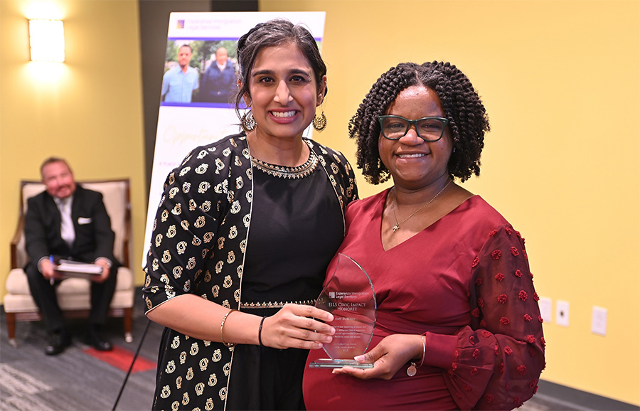 During the event, EILS recognized two individuals for their influential work to improve the lives of immigrants in our region, Jaya Ramji-Nogales, Temple University Beasley School of Law, and Amy Eusebio, City of Philadelphia, Office of Immigrant Affairs.