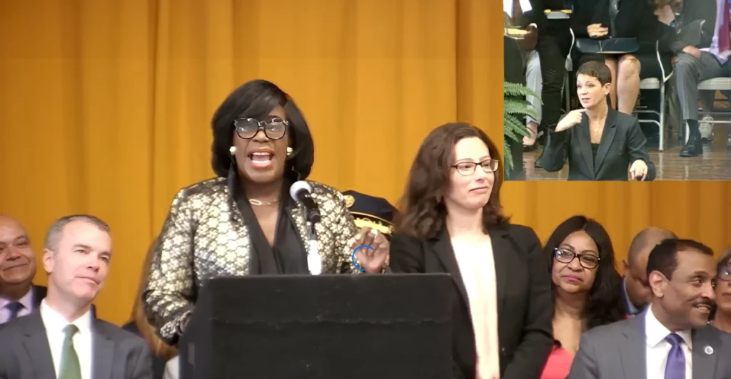 En un evento público celebrado en la Escuela Secundaria Russell Conwell de Kensington el 11 de abril de 2024, para conmemorar los 100 días de la Administración Parker, se reunieron durante dos horas los principales funcionarios ligados a la alcaldía.