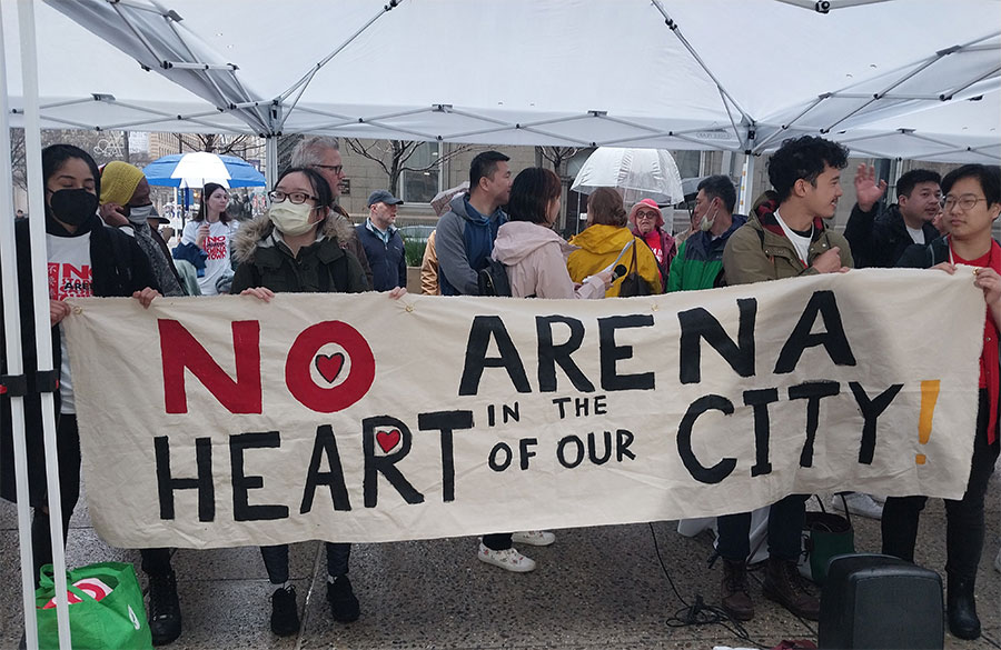 Según la coalición llamada “salvemos al barrio chino”, el servidor público dejó abierta la puerta para que los contribuyentes subsidien, el estadio. Por tanto, organizó una conferencia de prensa el 25 de enero frente a la alcaldía para exhortarlo a que honre su compromiso de no presentar legislación hasta que los constructores firmen un compromiso legalmente vinculante de no tomar dólares de la ciudad, el estado o de origen federal.