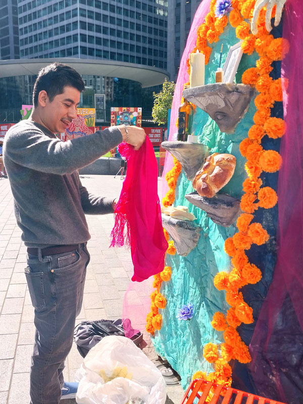 Nacido en Guadalajara, la capital del estado mexicano de Jalisco,Martín proviene de una familia de artistas autodidactas. Dedicado a su madre, su obra consiste de una escultura de una “catrina” hecha de poliuretano con una falda donde se encuentra la ofrenda. Esta pieza estará hasta el 3 de noviembre. La “catrina” es un personaje creado por el grabador y caricaturista José Guadalupe Posada en 1912 con el fin de burlarse de la clase alta social de su época en México.