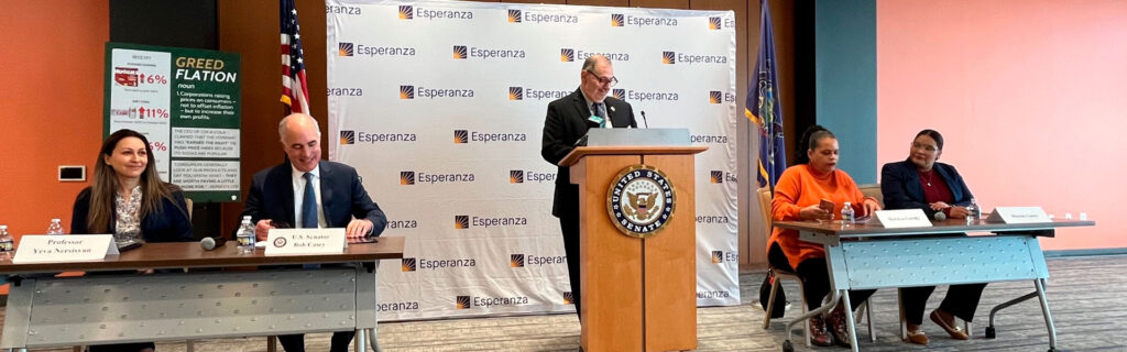 Esperanza’s founder and CEO, Rev. Luis Cortes, Jr, shared the new reality that food has become unaffordable not because of traditional competition but because of corporate greed. «We have created record profits for companies, unfortunately, at the expense of raising hunger and the working class.” Senator Bob Casey.