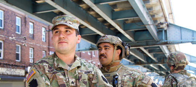 Filadelfia, PA – Cuando el Sargento Kyle-Melnick Hoffman ingresó a la Guardia Nacional de Pensilvania en 2009, nunca pensó que se vería estacionado en Kensington, cerca de la casa de su infancia, donde su madre todavía vive.