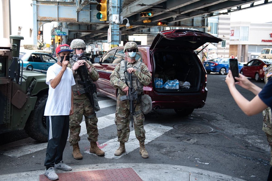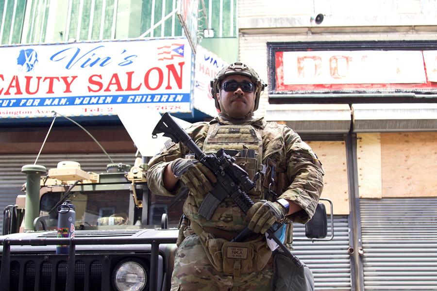 Hace unas semanas Melnick-Hoffman fue uno de los aproximadamente 50 soldados de la Guardia Nacional estacionados usando equipo de combate a lo largo de Kensington Avenue. Fueron desplegados del 3 al 9 de junio en respuesta a una ola de robos y daños a propiedades que ocurrieron después de las manifestaciones por la muerte de George Floyd quien fue asesinado por el oficial Derek Chauvi el 25 de mayo.