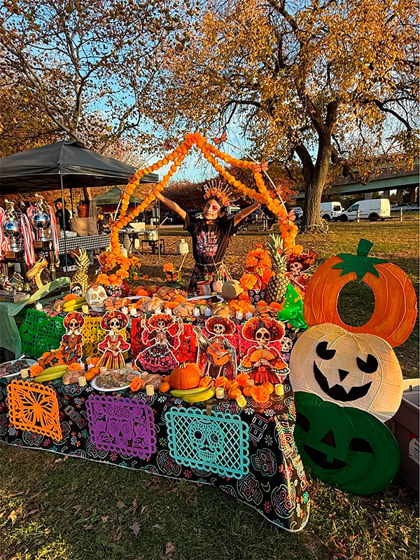 In South Philadelphia, the organizing committee of Fleisher Art Memorial’s Día de Muertos celebration held its 13th edition on Saturday, November 1. Highlights included the Children’s Festival, “El Mercado de las Calacas,” and the Procession of La Calaca Flaca featuring “La Llorona.” Guest artist María Hernández, originally from the Otomí community of San Juan Amanalco de Becerra in the State of Mexico, dedicated her altar to “México Lindo y Querido,” offering a colorful and abundant tribute.