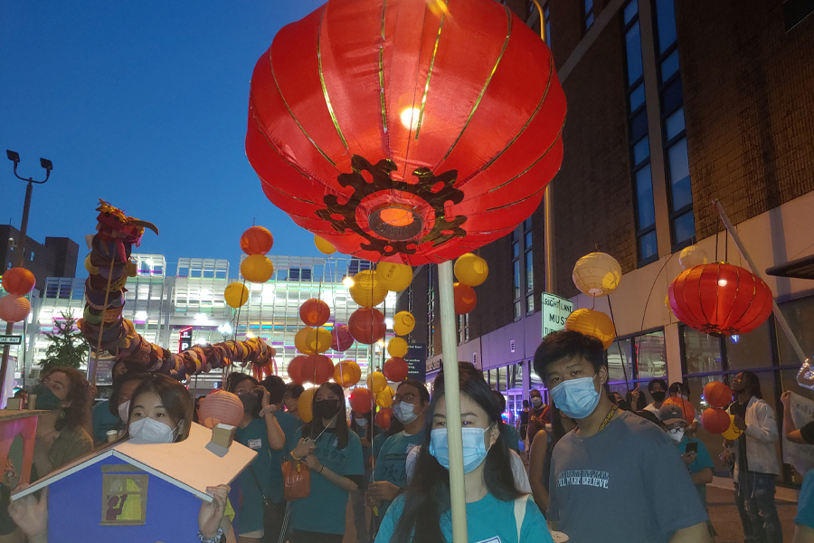 Participantes del Desfile de Linternas enfrente de la oficina ICE. (Foto: Cortesía/Leticia Roa Nixon)