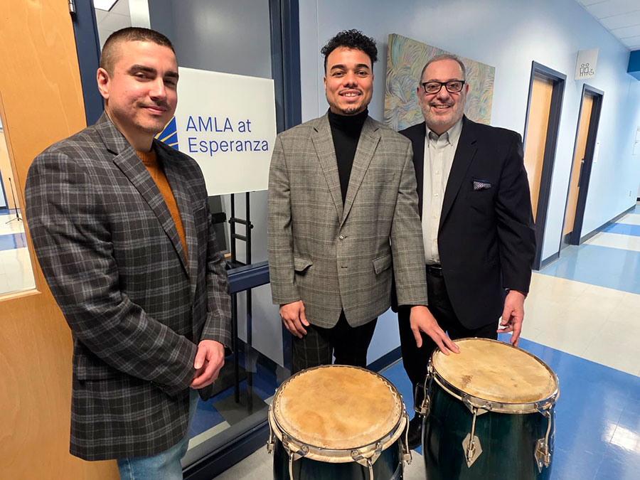 Las congas fueron donadas por Christian Noguera, músico, percusionista y artesano, cofundador de Acheré Percussion. Durante el acto, Noguera se reunió con el reverendo Luis Cortés Jr, CEO de Esperanza, donde AMLA es afiliado y Daniel De Jesús, director de Educación Musical de AMLA “Es un gran honor tener una donación; es muy especial porque esto es hecho por él, porque es entregado por una persona que pertenece a nuestra comunidad”, sostuvo De Jesús.