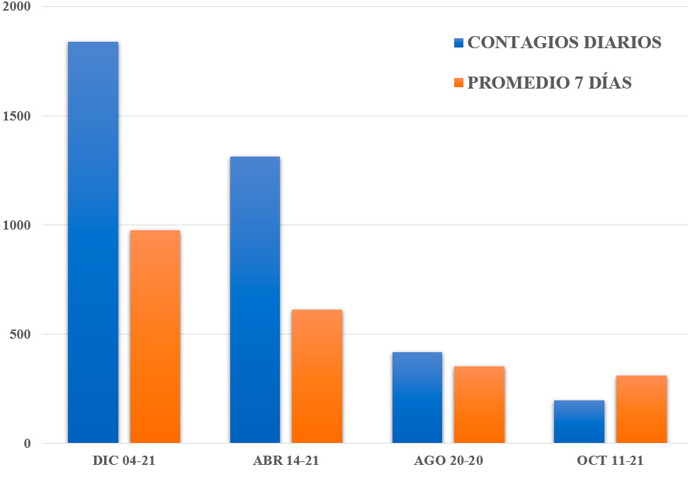 Hasta el martes 12 de octubre, la población totalmente vacunada en Filadelfia era de 943.937, es decir el 59.8% de la población de la ciudad, en tanto que aquella que había recibido al menos una dosis era de 1.150.207, 72.8% de la población (phila.gov). Al mismo tiempo el número de casos de contagio por COVID-19 ha disminuido, así como el número de decesos (ver gráfica).