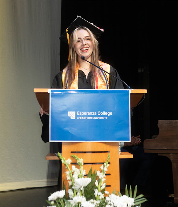The ceremony celebrated the history and traditions of Esperanza College of Eastern University with meaningful elements, such as the reading of scripture in both English and Spanish, the singing of the institutional anthem by an ensemble of faculty, students, and alumni, and the responsive reading of the litany.