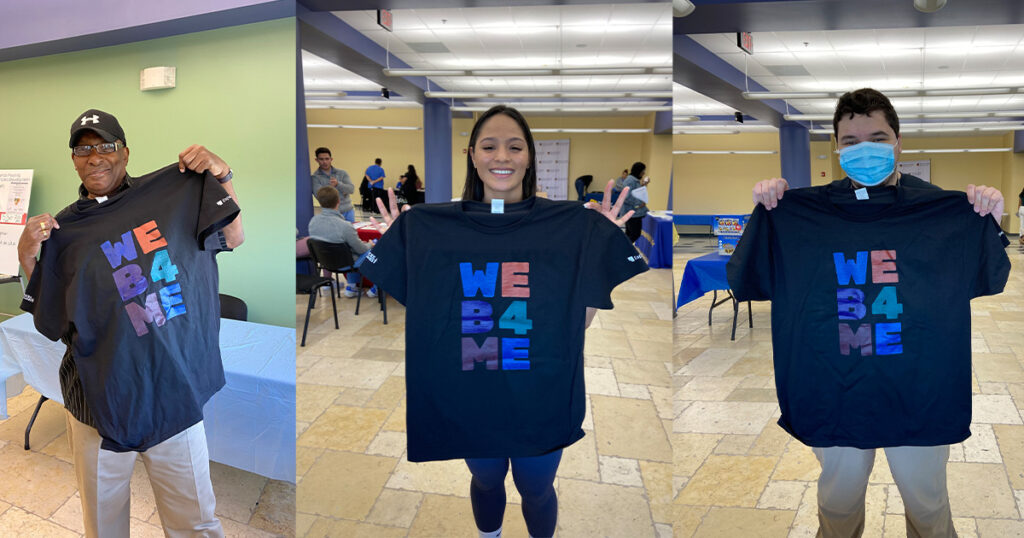 Our working group members consist of community members from different groups. Specifically, we have representatives that are block captains, pastors, youth, business owners, and community-based organizations. They provided critical feedback on health materials and helped to ensure that the products reflected community realities in terms of beliefs, knowledge, and values about vaccines. For example, the youth vaccine working group designed a t-shirt that conveys the importance of protecting others through COVID-19 vaccination. The t-shirt says “We B4 Me” and “Get Vaxed Against COVID-19”. The youth agreed that this message conveys the importance of protecting others. Specifically, they believe it is extremely important to protect seniors and immunocompromised individuals. Additionally, the faith working group created a sermon to be used during Sunday service for the faith audience. Lastly, block captains developed a postcard to be used when they canvassed around the community. All of the working groups have done a great job and we are extremely proud of their work.