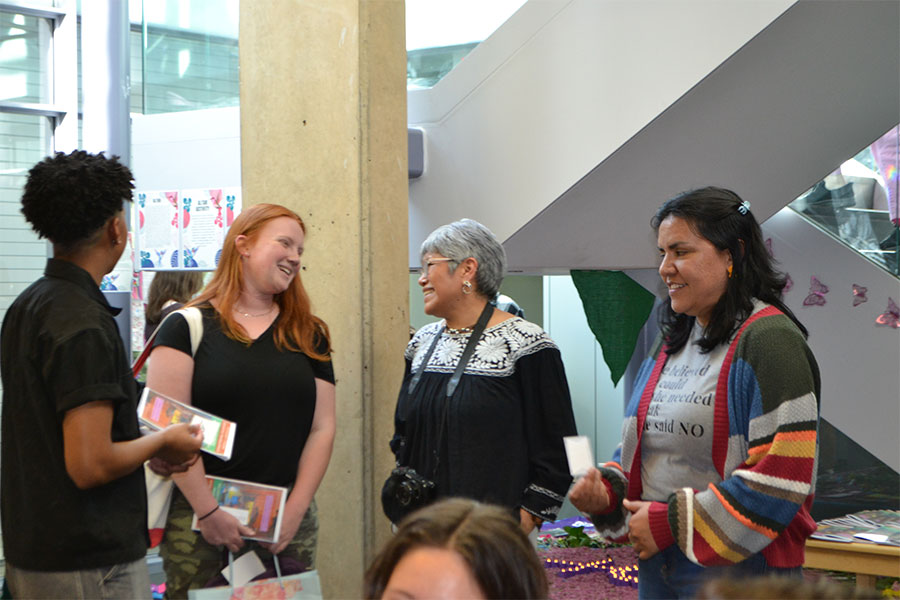 Verónica Montes, profesora asociada de sociología en Bryn Mawr College sometió una propuesta sobre colectivos feministas en Latinoamérica al Programa 360⁰ de esa institución educativa. Tras ser aceptada, invitó a sus colegas académicas de Haverford College, Lina Martínez y Marlene Rosas para que las tres impartieran cursos de feminismo desde el enfoque sociológico, histórico y cultural. Este proyecto de 9 meses, que incluyó el viaje de 15 estudiantes a Bogotá y a Medellín, culminó con la exhibición “Tejiendo y Puenteando Encuentros Transnacionales” que se presenta en Dalton Hall (101 N. Merion Avenue, Bryn Mawr, PA 19010) hasta el 16 de mayo.