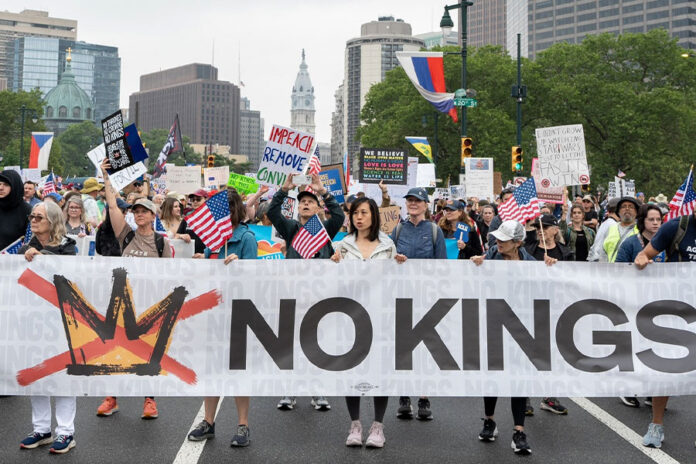 “No Kings” es un movimiento nacional que surgió en 2025 y que ha organizado masivas protestas en distintas ciudades del país, con el mensaje de que Estados Unidos no debe ser gobernado como una monarquía ni bajo prácticas autoritarias.