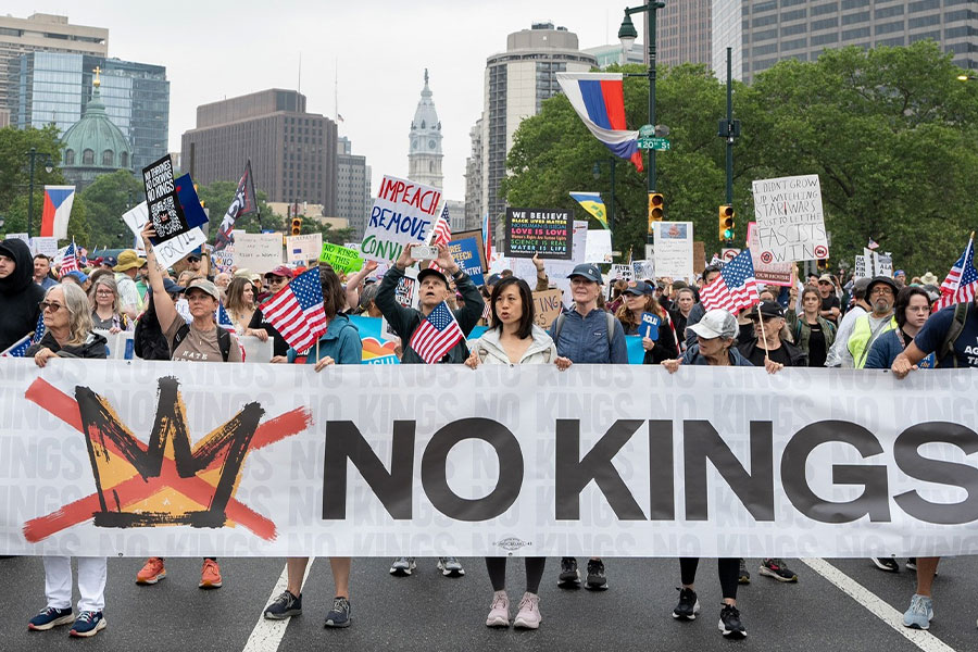 La movilización en Filadelfia es organizada por grupos comunitarios y organizaciones cívicas, entre ellas Indivisible, No Kings Coalition y otras redes locales, como parte de una jornada nacional de protesta no violenta.