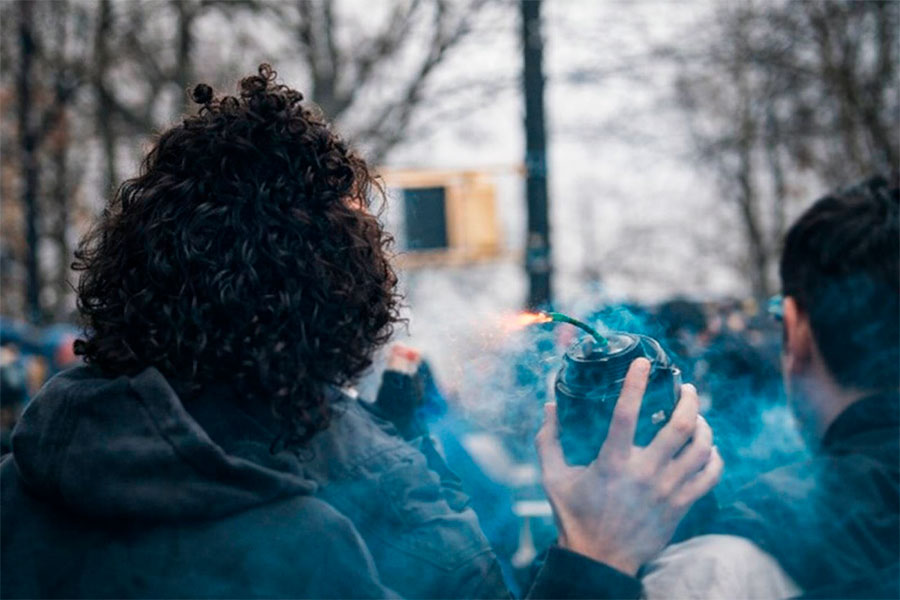 Según la acusación, a las 12:15 p. m., Balat encendió y lanzó un artefacto explosivo (Dispositivo-1) hacia donde estaban reunidos los manifestantes. (Foto: NYPD)