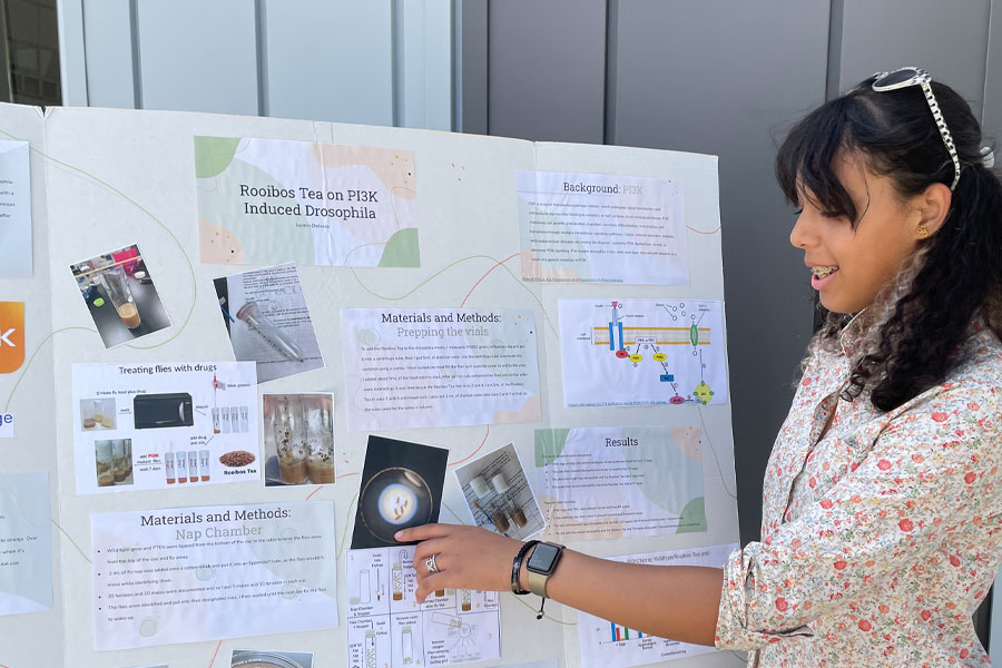 Para culminar la clase, los estudiantes prepararon un póster científico para presentar sus hallazgos. Este es un paso importante para los científicos. Los estudiantes compartieron sus resultados en un evento en el día para la comunidad el viernes 12 de agosto. Los estudiantes ahora se preparan para su próxima presentación como parte del Simposio de Minorías de la Salud el 14 de octubre.