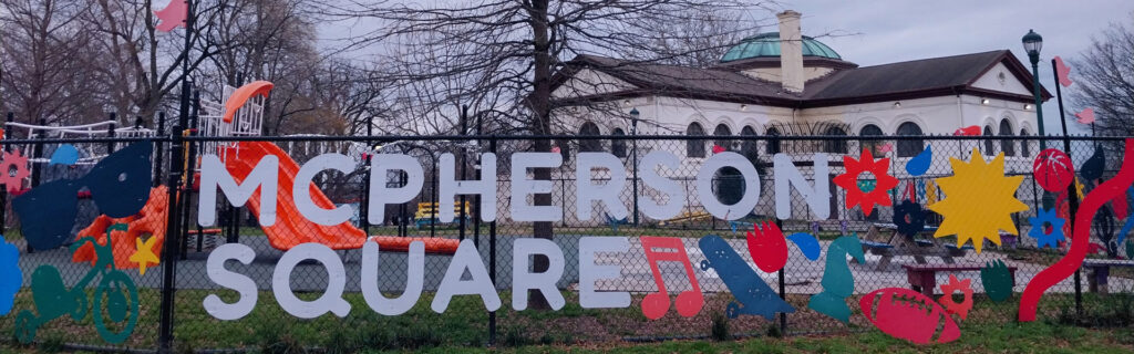 Tres de esos parques están a corta distancia uno de otro Hope, Hissey y McPherson Square.