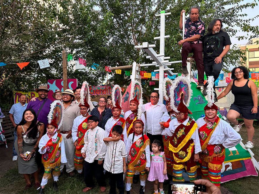 César Viveros develó “La Cruceta”, el artefacto de madera para la “Danza de los Guaguas”, y expresó “en esta interpretación visual de una tradición de nuestro estado natal, Veracruz, quise traer a nuestra comunidad estas memorias que alguna vez nos causaron asombro cuando lo presenciamos en vivo… Gracias a todos los colaboradores y artistas por su entrega”.