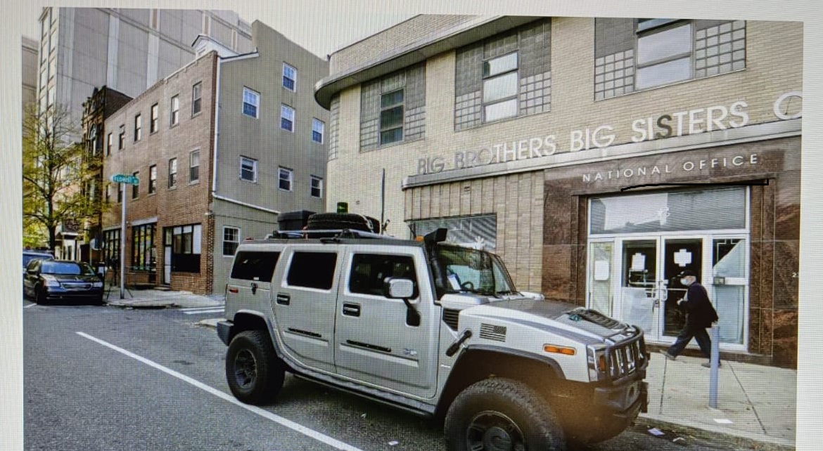 El viernes por la mañana temprano, el Hummer todavía estaba en la calle 13 cerca de Vine. El vehículo tenía una calcomanía en la ventana y un sombrero con el logo del grupo de internet QAnon, conocido por difundir teorías de conspiración.