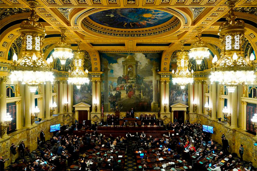 Democratic Gov. Tom Wolf delivers his budget address for the 2022-23 fiscal year to a joint session of the Pennsylvania House and Senate in Harrisburg, Pa., Tuesday, Feb. 8, 2022. Two months after a contentious, once-a-decade process overhauled the shape of their districts, Pennsylvania state lawmakers and hundreds of candidates hoping to unseat them are bracing for a primary election that will greatly narrow the field. (Photo: AP/Matt Rourke/File)