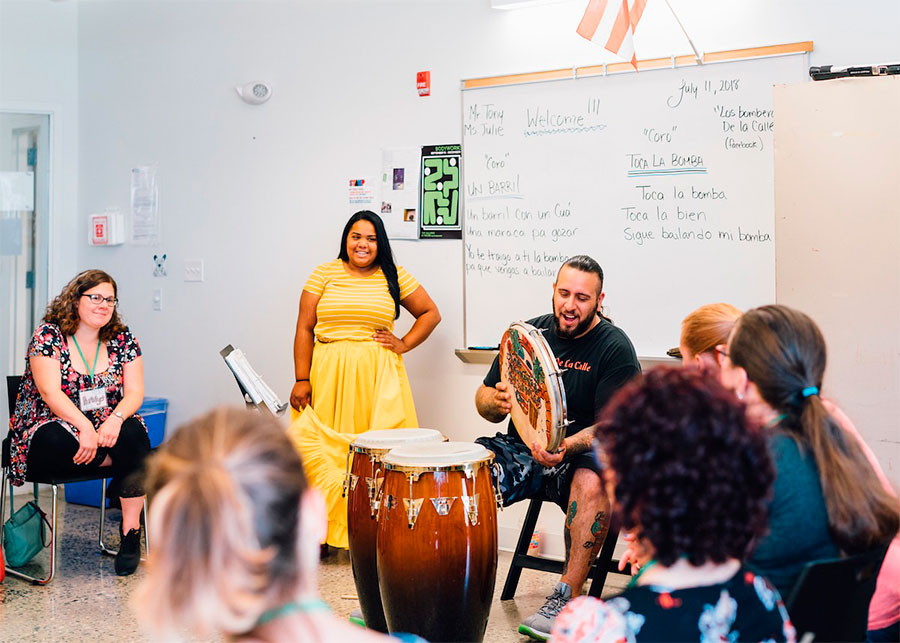 acudió a eventos comunitarios donde se tocaba y bailaba la bomba y plena tradicional de la isla, por la Familia Rojas, Maribel Lozada, Alberto Pagán y otros más.