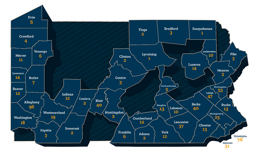 See the breakdown for municipal officers funded by PCCD in the chart below. Funding was provided through two of PCCD’s Law Enforcement Recruitment Incentives solicitations, aimed at addressing one of the most pressing public safety and workforce challenges Pennsylvania faces – the hiring shortage of police officers.