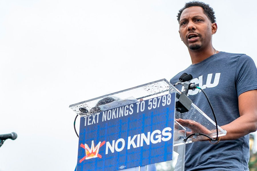 Mike Lee, director Ejecutivo de la ACLU de Pensilvania,durante la marcha “No Kings Day” (No Reyes) en Filadelfia, y coincidió con el cumpleaños 79 de Donald Trump y el desfile militar por el 250 aniversario del Ejército de EE. UU. (Foto: RRSS/ACLU-PA)