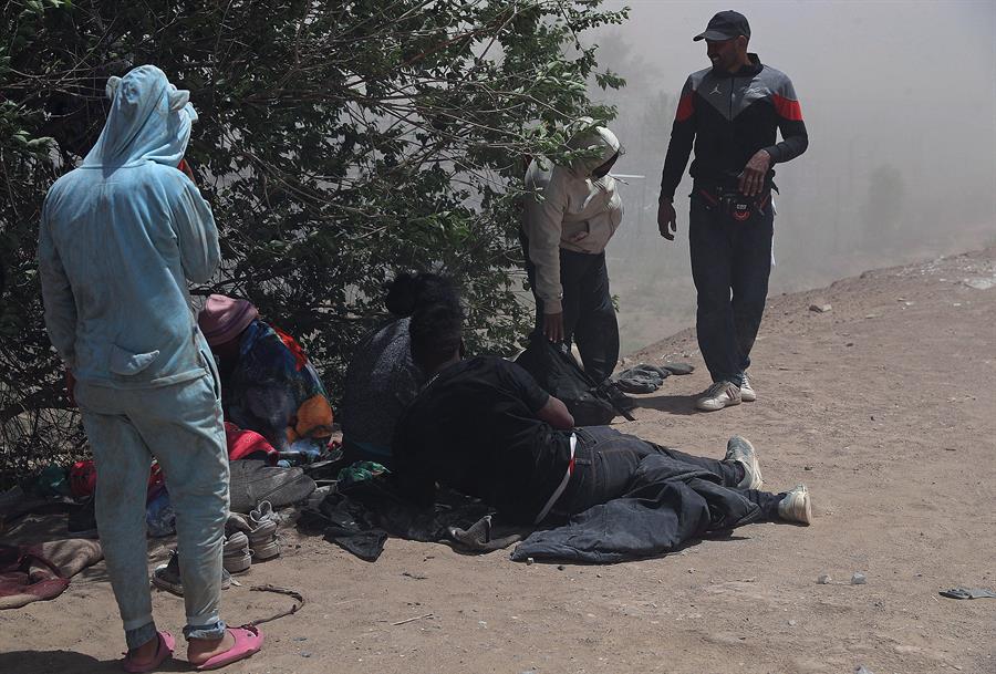 Migrantes permanecen entre la frontera con Estados Unidos, el 27 de abril de 2024 en Ciudad Juárez, estado de Chihuahua (México). EFE/Luis Torres