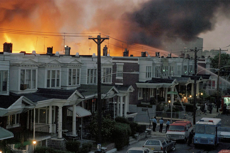 Police seeking to oust members from their headquarters used a helicopter to drop a bomb on the house on May 13, 1985. More than 60 homes in the neighborhood burned to the ground as emergency personnel were told to stand down.