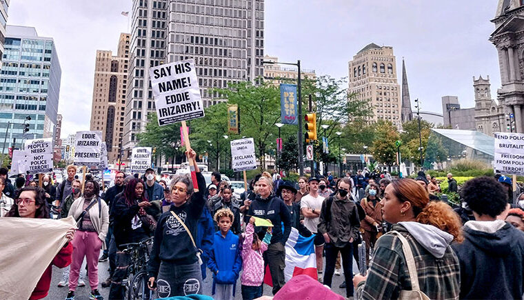 Un centenar de personas se reunieron en el Ayuntamiento de Filadelfia para pedir justicia para Eddie Irizarry, llamado de cariño “Junito”, y después marcharon por el centro de la ciudad para protestar por la decisión de la jueza de Filadelfia de desestimar todos los cargos, contra el ex oficial Mark Dial, incluido el de asesinato.