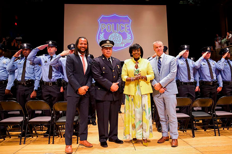 La alcaldesa Cherelle Parker con el grupo de seguridad de la Policía en Filadelfia. (Foto: Impacto staff)