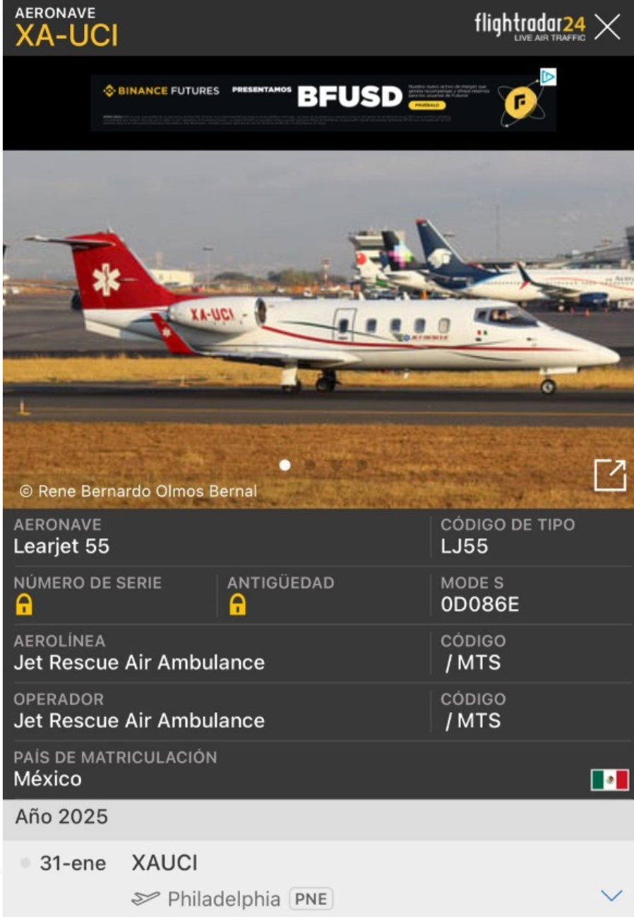 En un reporte de la cadena NBC Filadelfia, dan a conocer que los 6 pasajeros del avión que se accidento al noroeste de la ciudad, eran mexicanos. El pequeño avión ambulancia, se estrelló pasadas las 6:00 p.m.del 31 de enero 2025 cerca del Roosevelt Mall en Cottman Avenue.